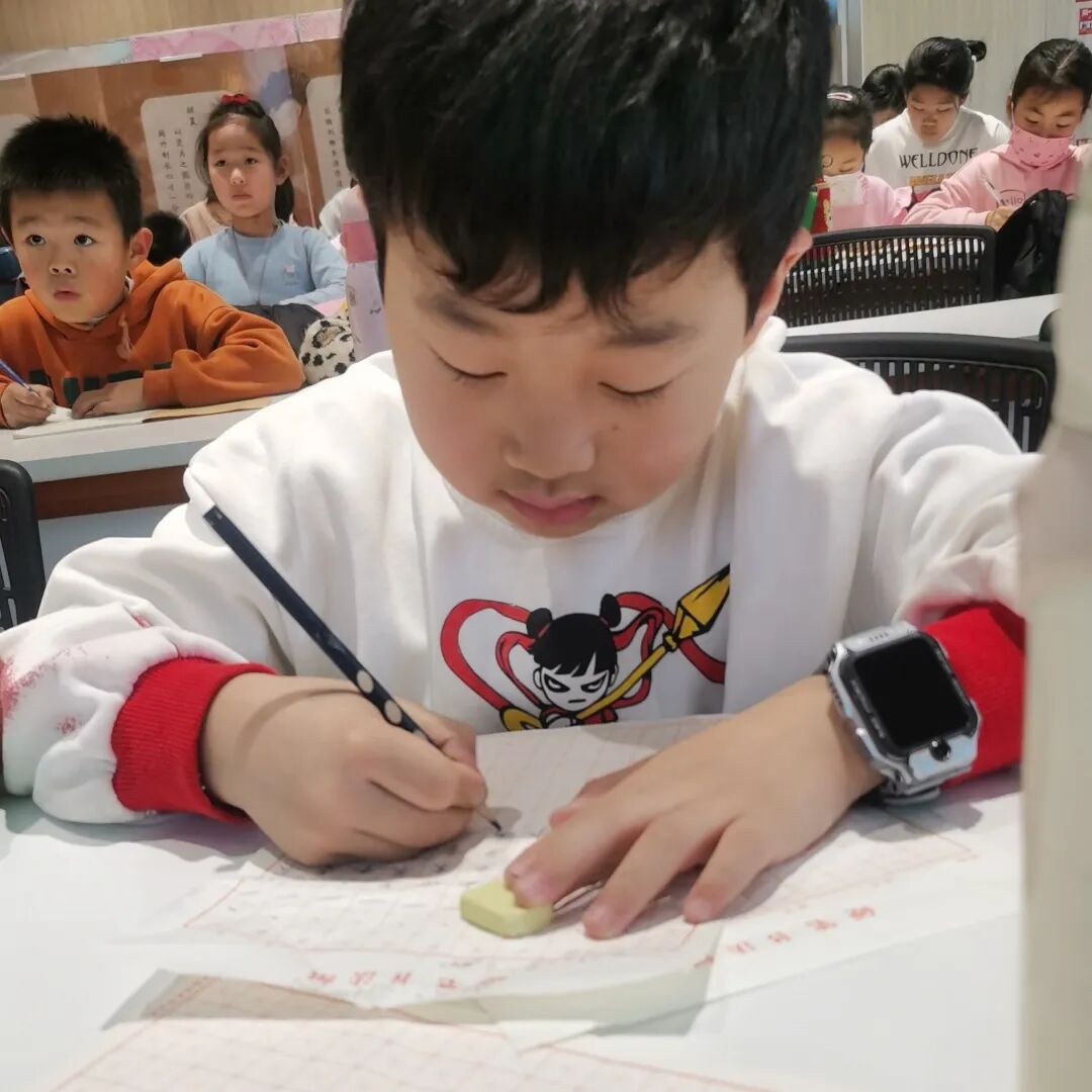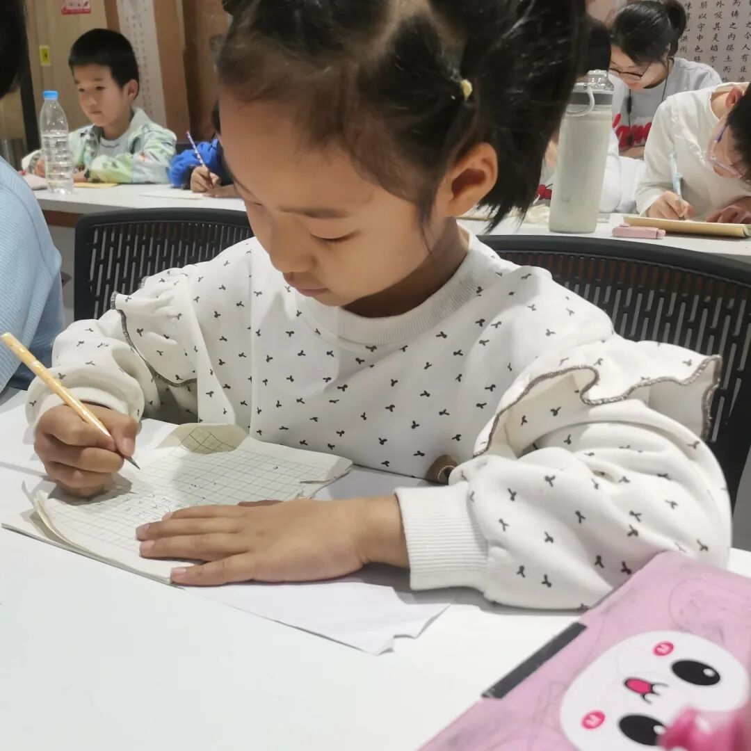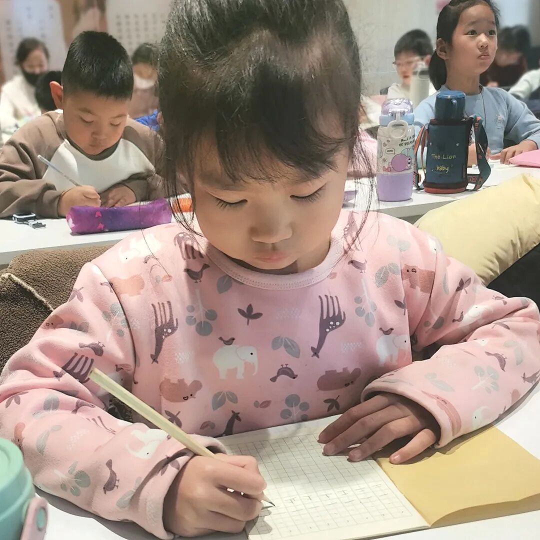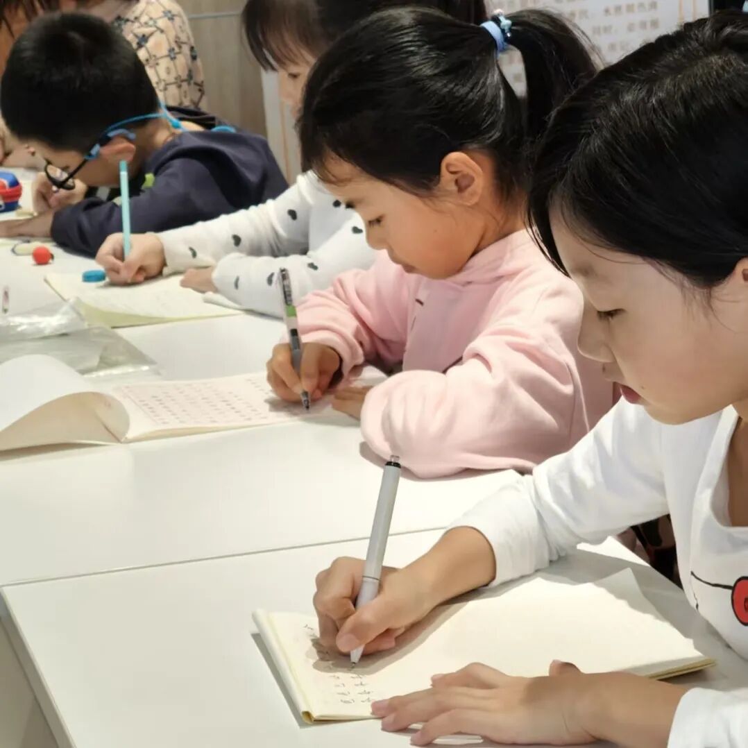 课堂上,墨香萦绕间,大朋友们静心揣摩笔法韵律,在书写中舒缓身心、陶冶情操;小朋友们端坐桌前,蘸着墨香认真练习,在一笔一画中感受汉字的韵律之美。