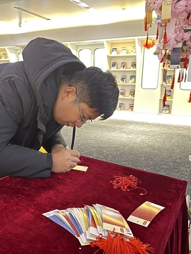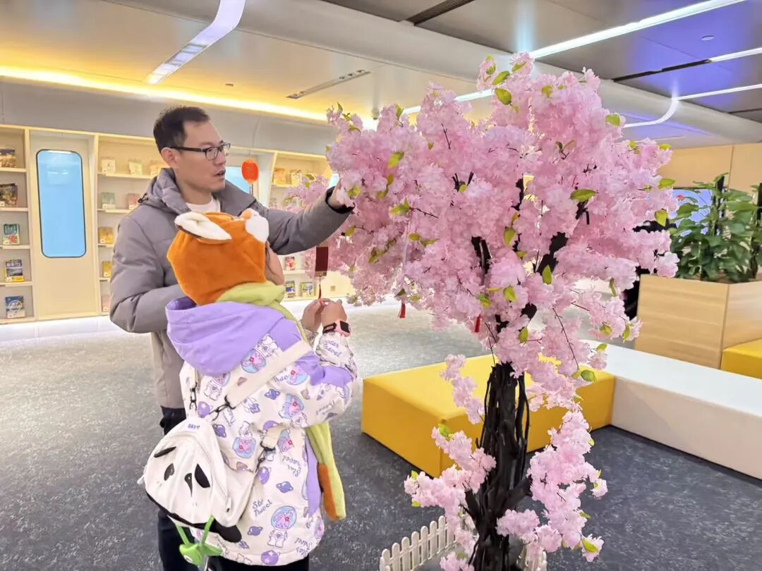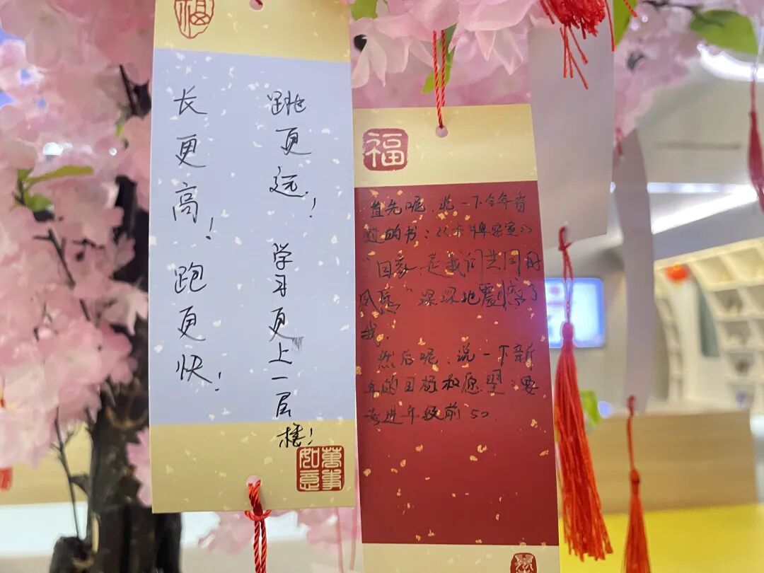 阅读分享,心愿启程。在机舱阅读交流中心,读者们领取“阅读分享卡”,认真写下过去一年里触动心灵的句子、读后的感悟,或是真诚的图书推荐。一张张卡片承载着思考与期待,被轻轻悬挂于许愿树上,如同一树会发光的文字果实,照亮了新年的阅读开端。