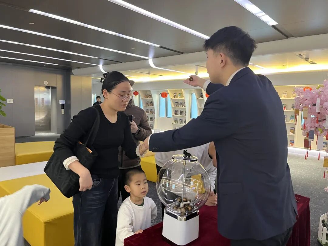 扭蛋寻福,手作送暖。“福气扭蛋机”前热闹非凡,每个人都怀着期待转动扭蛋,领取一份特别的年俗任务。无论是亲子阅览室里剪纸的专注身影,还是科技产业信息咨询中心内提笔挥毫的潇洒瞬间,“福”字在指尖诞生,祝福在心间流淌。完成任务的读者们纷纷带上话题#空港文化中心元旦活动#分享喜悦,也将春联套装与手作福气一同带回了家。