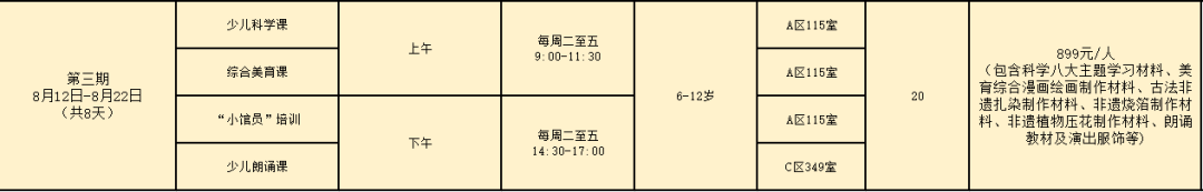 6.所有夏令营学员在课程结束后将有节目彩排和汇报演出(具体时间另行通知),请家长协调好学员时间。