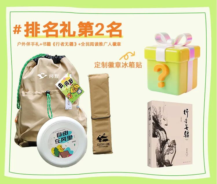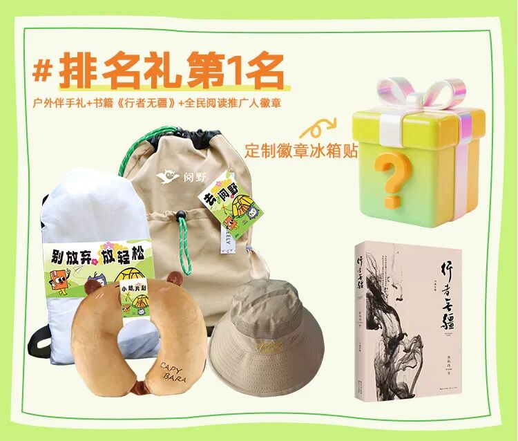 Top2-【去阅野】定制户外伴手礼+书籍《行者无疆》+全民阅读推广人定制徽章