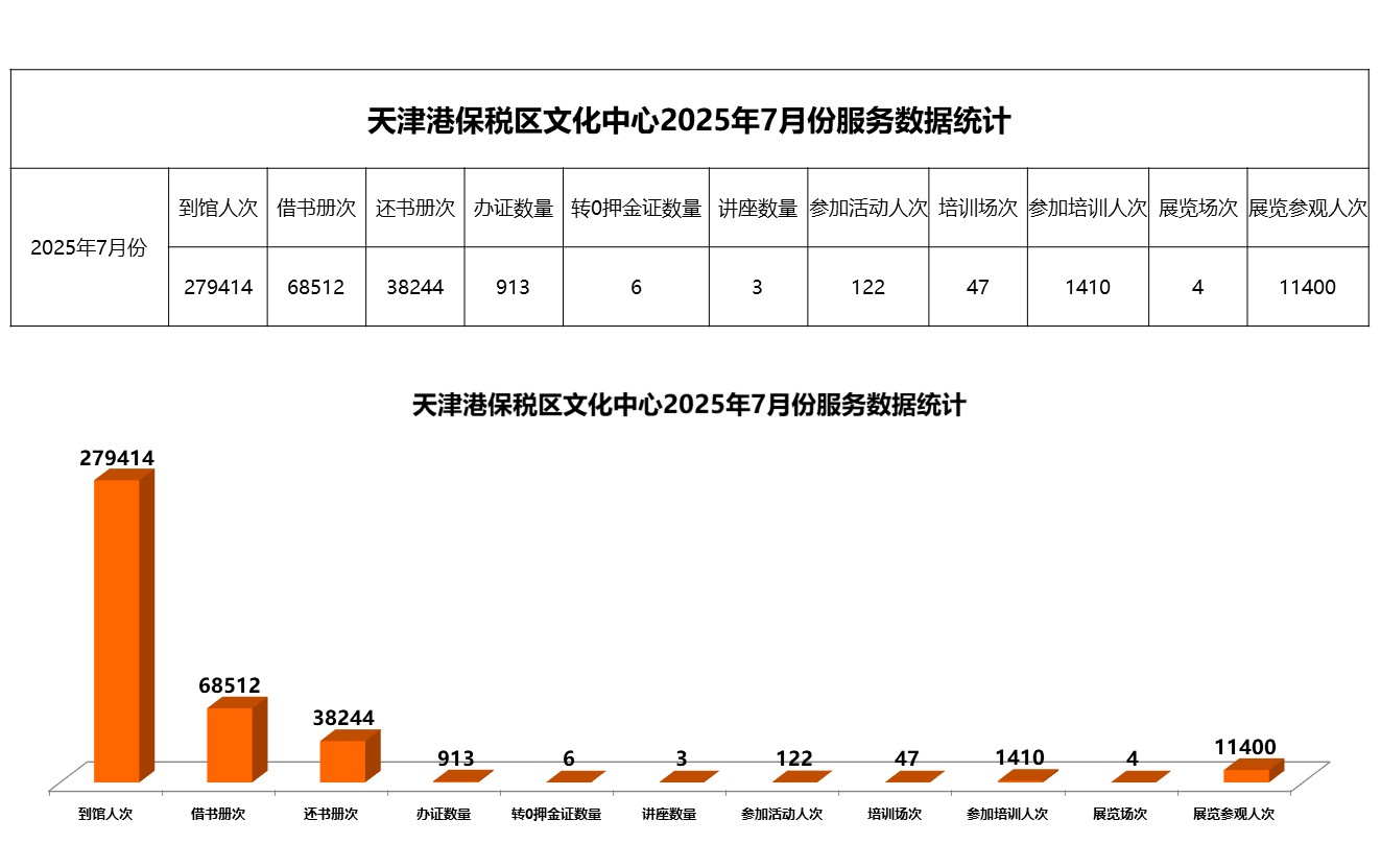 天津港保税区文化中心 2025年7月份服务数据统计