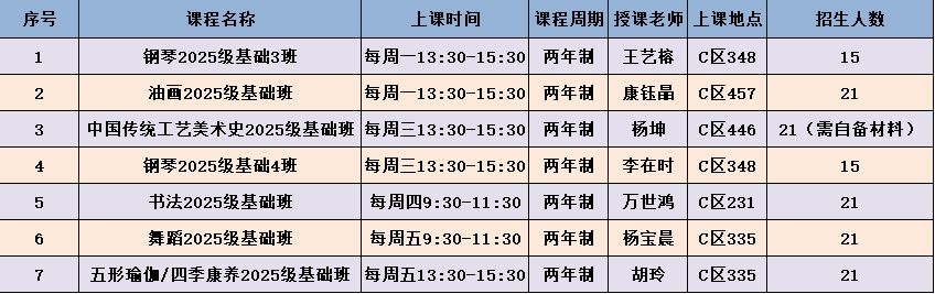 开课时间2025年9月中旬,按学期上课,每年两学期,每学期共计15次课程,每周1次课程,每次课程2小时。