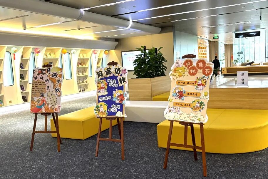 通过中秋主题展板,让读者了解中秋的文化脉络,悄悄搭起了情感和传统之间的桥梁;以定格节日的欢乐瞬间,分享至社交媒体,助力中华优秀传统文化的传承与弘扬。