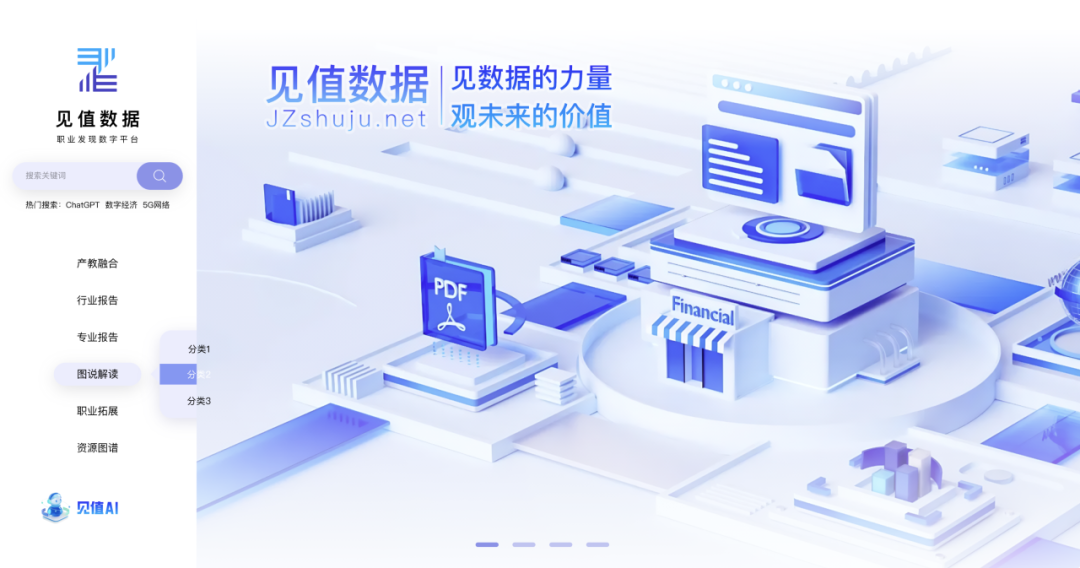 见值数据-职业发现数字平台整合本科、高职专业所匹配的超过500多个行业的数据分析报告,以“产教融合”为切入点,突出新质生产力所涉及的内容超过10万+。同时提供基于职业规划、职场培训、创业指导、心里服务、形象礼仪等职业拓展资源,可服务于学校的专业人才培养以及大学生的职业发展规划。平台内含见智AI工具,依托顶级人工智能大模型,致力于为用户提供更加个性化、精准、高效的信息服务体验,享受智能科技带来的便利与乐趣。