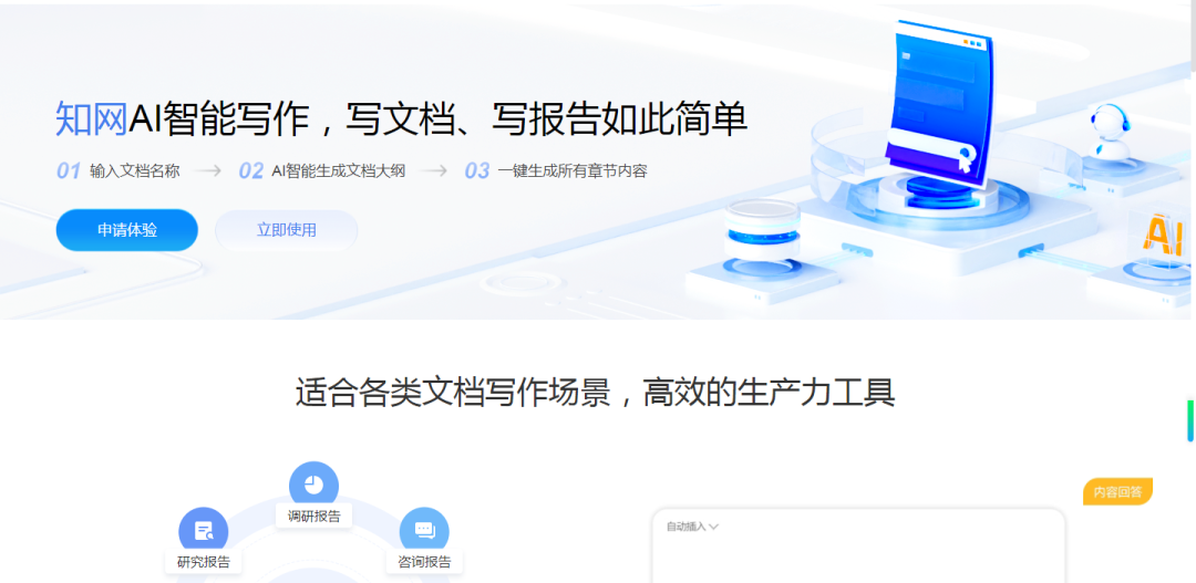 AI智能写作是基于大模型和AIGC技术开发的文档智能生产系统,嵌入技术方案、调研报告、规划报告、研究报告、工作总结等各类文档编写场景,开发类ChatGPT的人工智能助手,用户可以自然语言的交互方式与AI机器人进行实时对话,智能生成文档大纲、章节段落内容,辅助用户快速高效地完成文档初稿内容。同时提供了二次修改完善功能,包括润色、续写、重写、协同编写等功能,实现了边生成、边协同、边查阅读资料的综合应用。