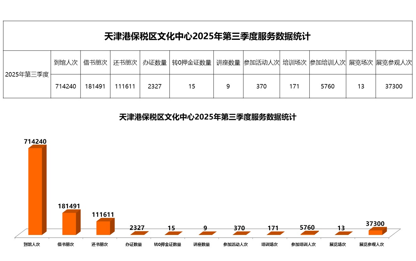 天津港保税区文化中心 2025年第三季度服务数据统计
