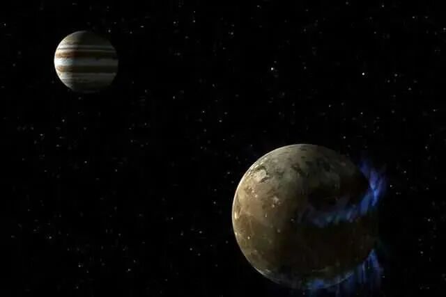 木星和木卫三,远处为木星